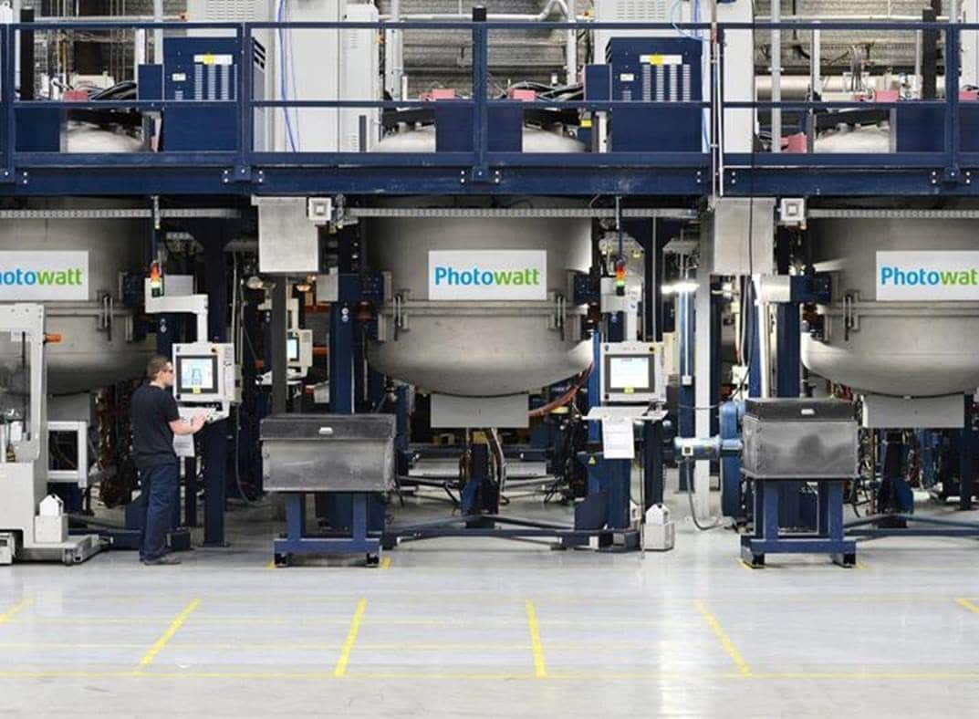 Photowatt (Bourgoin-Jallieu, département Isère) leader industriel français de wafers, cellules et panneaux photovoltaïques, riche de savoir – faire depuis sa création dans les années 70, représente aujourd’hui plus de 214 emplois (8 personnes au comité de direction, 33 cadres, 72 techniciens, 103 opérateurs), ceci sans compter les sous-traitants et les fournisseurs français dont des PMI de la région Auvergne Rhône-Alpes.