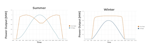 Ce dernier assure que la géométrie de sa tour à suivi solaire sur un seul axe permet d’obtenir environ trois fois la surface d’exposition solaire des systèmes à panneaux plats traditionnels pour une même emprise au sol. Le design vertical empilé de chaque tour capte la lumière du matin et du soir sous de faibles angles, produisant une courbe de puissance à double pic qui s’aligne mieux sur la demande énergétique réelle, a précisé l’entreprise.