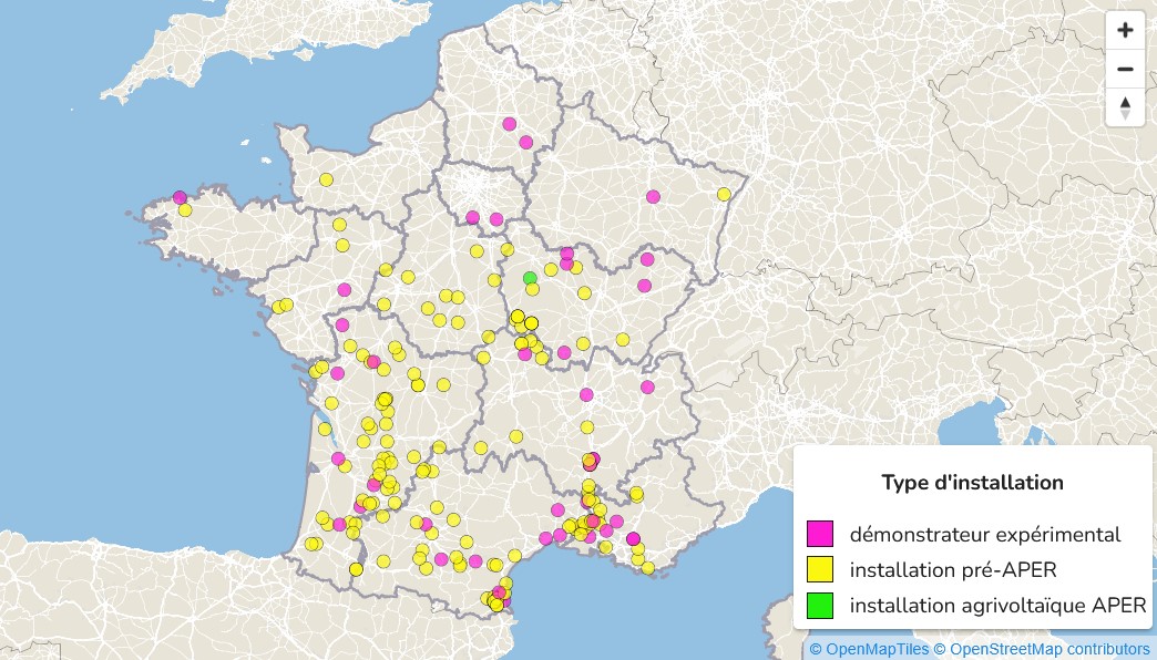 A ce jour, cette première version de l’Observatoire présente les données de plus de 200 installations existantes ou autorisées par les services de l’État en France métropolitaine et DOM. La plupart de ces projets a été autorisée avant la loi APER. Selon l’Ademe, l’Observatoire sera enrichi régulièrement avec la mise en service de nouvelles installations agrivoltaïques, dont notamment celles autorisées en application de la loi APER, ainsi qu’avec les premiers résultats de performance agricole et énergétique des projets.