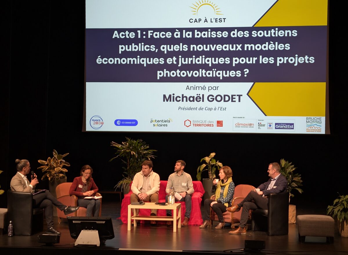 Alors que les dispositifs de soutien public au photovoltaïque se réduisent progressivement et que le cadre réglementaire évolue par à-coups, la filière est contrainte de réinventer ses modèles économiques et juridiques. Comment continuer à développer et financer des projets photovoltaïques compétitifs ? Autoconsommation, valorisation locale de l’électricité, stockage, pilotage des usages : autant de pistes explorées lors d’une table ronde organisée dans le cadre des Rencontres solaires du syndicat Cap à l’Est, le 27 janvier dernier en Alsace.