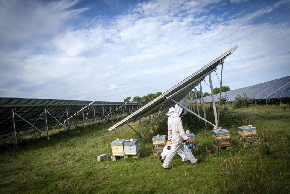 Le parc solaire de La Verdière en est l’une des illustrations. Les 30 ruches installées sur le parc de La Verdière en 2019 ont d’abord essaimé sur le parc de Charleval. Le principe est celui de la transhumance : l’apiculteur peut déplacer ses ruches en fonction des saisons pour obtenir du miel spécifique à chaque floraison. L’été, les ruches peuvent ainsi être transportées sur le parc solaire -d’Esparron de Verdon (Alpes-de-Haute-Provence) pour bénéficier de la lavande du plateau de Valensole. Trois autres parcs solaires, dans le Var et dans les Alpes de Haute-Provence, accueilleront bientôt des ruches.
