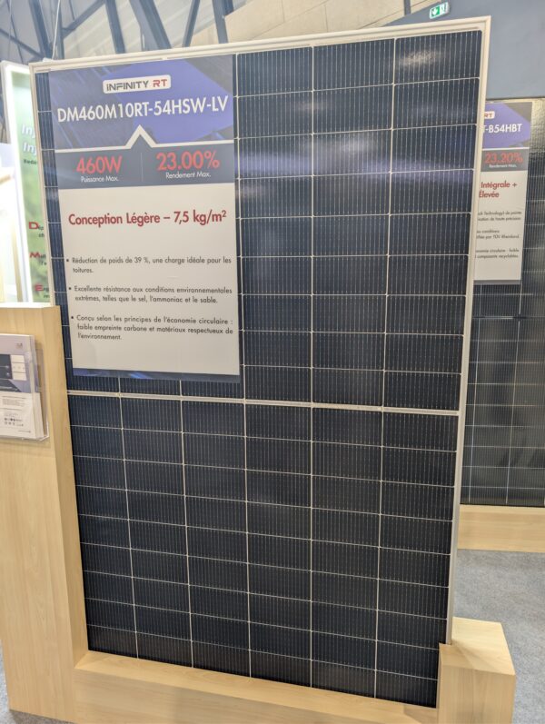 Le fabricant chinois DMEGC profite de sa présence au salon EnerGaïa de Montpellier pour présenter son nouveau module léger DMxxxM10RT-54HBW-LV, spécialement conçu pour les toitures dont les structures ne permettent pas l’installation de modules standards. Développé sur la base du format classique 1762 × 1134 × 30 mm, ce panneau atteint une puissance jusqu’à 460 Wc grâce à la technologie TOC.