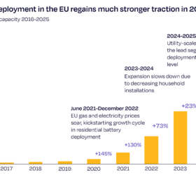 55 % des nouvelles capacités proviennent du stockage à grande échelle, confirmant son rôle moteur dans la croissance du marché européen. Les installations résidentielles ont à l’inverse diminué de 6 %, reflétant le ralentissement continu dû à la baisse des prix de l’électricité et à la réduction des dispositifs de soutien.
