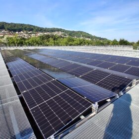 Installée sur une charpente métallique au-dessus d’un parking, la centrale photovoltaïque de 618 kWc réalisée par Eiffage Énergie pour le compte de la Métropole Rouen Normandie se distingue par son système d’intégration.