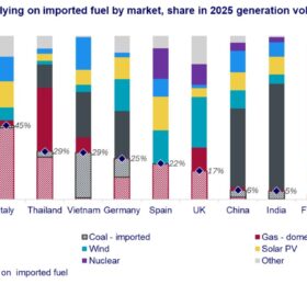 Les pays les plus dépendants des importations d’énergie apparaissent logiquement comme les plus exposés. Le cabinet estime que le coût moyen de production d’électricité pourrait augmenter de 2,30 dollars/MWh (environ 2,10 €/MWh) dans ces 13 marchés si une désescalade du conflit permet une détente des prix des combustibles au second semestre 2026.