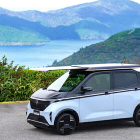 Le constructeur automobile japonais présente un prototype de toit solaire photovoltaïque extensible installé sur une Nissan Sakura Kei sur le salon de la mobilité au Japon.